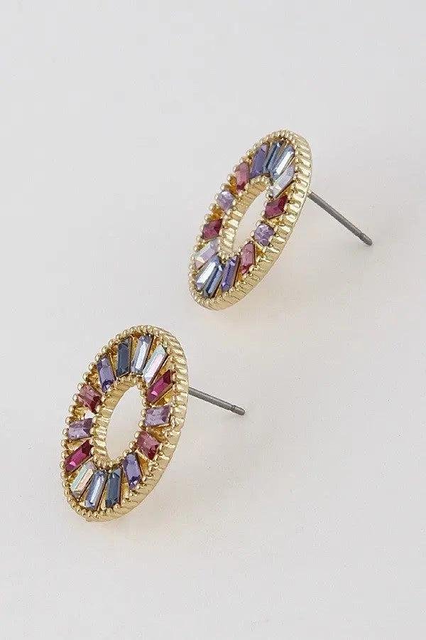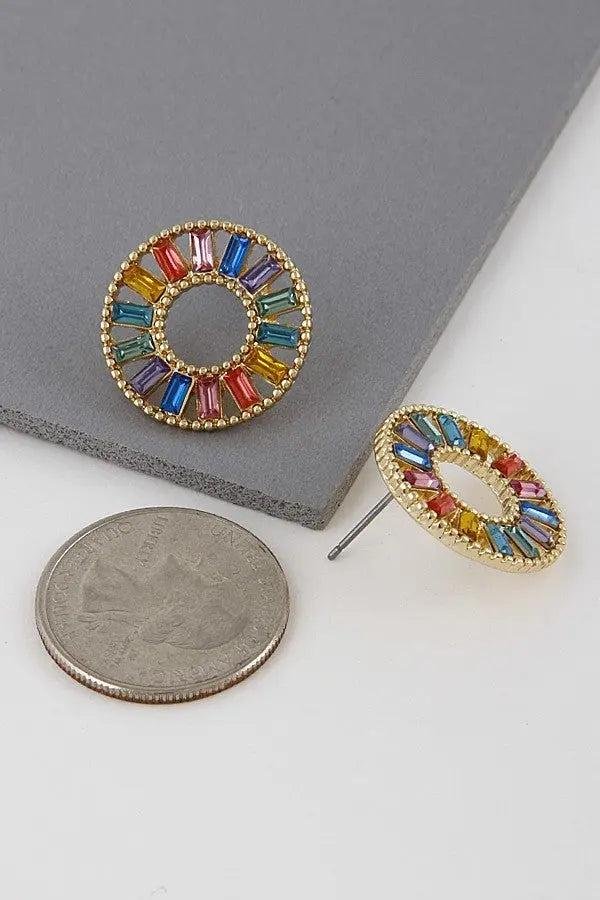These beautifully stoned earrings are a great way to add a small pop of color to your outfit. At approx 1″ x 1″, they’re great for everyday wear!