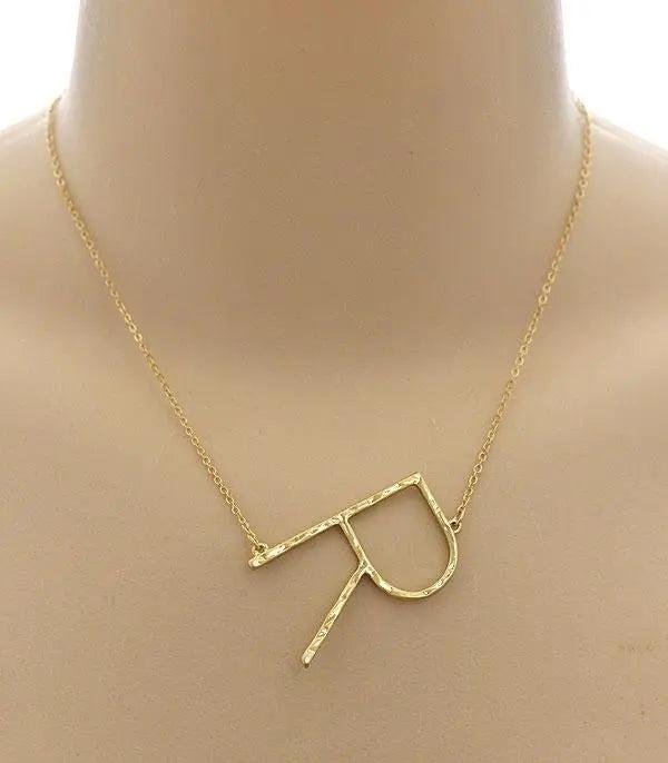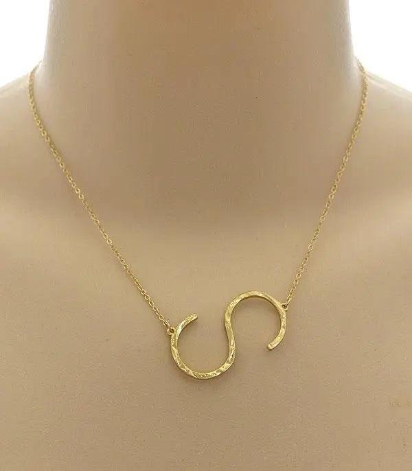 This necklace is the perfect accessory for any outfit. The hammered initial necklace is unique and adds a personal touch to any look. The dainty chain and delicate letter make this piece perfect for everyday wear.