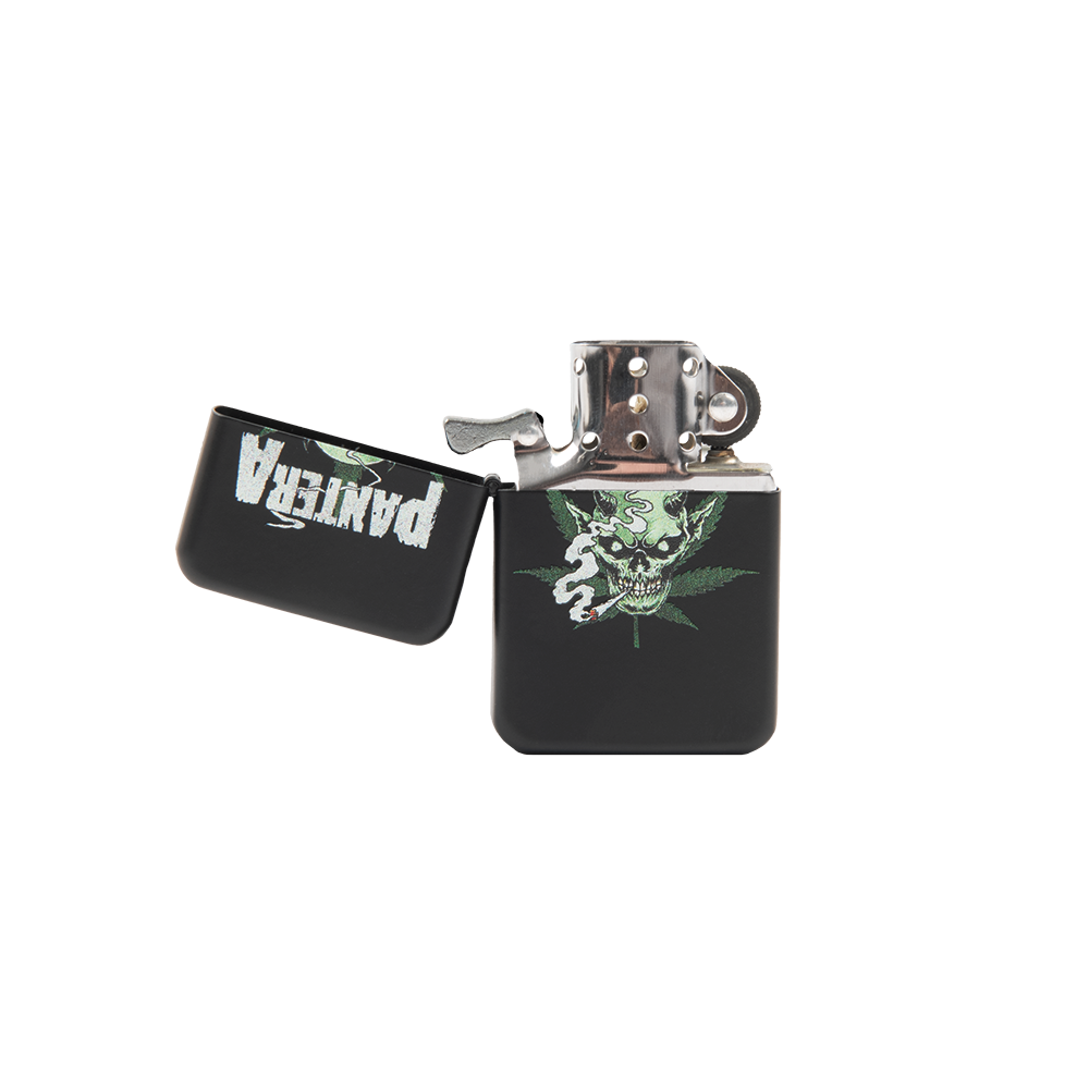 Black Lighter Featuring Pantera Logo And Skull Smoking Cannabis Illustration. Note: Does Not Include Fluid.