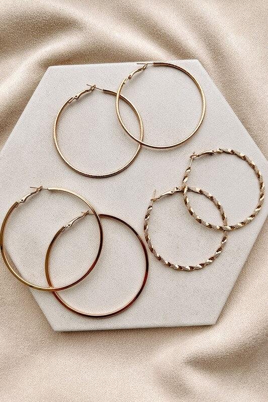 POINTER: Set includes smaller hoops for everyday wear, textured hoops for special occasions, and large hoops for a statement going-out piece! This ONE set covers ALL your needs.