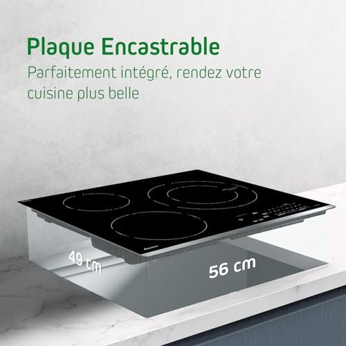 Typologie: Induction Type de table: Induction Mode d’installation: Encastrable Largeur en cm: 60 Type d’énergie: Electricité Nombre de foyers: 3 Matériau de la table: Vitroceramique Emplacement du bandeau: Frontal Autres couleurs disponibles: Inox;Noir Ean code: 3660767208025 Amplitude Avec son grand foyer de 28 cm et 4000W, toutes les cuissons sont disponibles, des mijotages les plus doux aux fritures les plus vives. Commandes dédiées Chaque foyer a 14 positions de cuisson qui permettent un réglage très précis des températures. Il bénéficie en outre de 3 accès directs dont un Booster . Ces accès programmables (6–10) permettent un accès plus rapide aux puissances désirées. EasyCook cette fonction (badgée Eco) permet d’identifier la zone de cuisson idéale en fonction du diamètre du récipient. Elle contribue à l’atteinte plus rapide de la température de consigne et permet ainsi de faire des économies d’énergie Grilles & Commandes Grilles Commandes Type de commandes: Touches sensitives Type de régulation d’énergie: Electronique Minuterie: Electronique 99mn Système d’allumage: Branchements et Sécurités Branchements Electriques Puissance maxi électrique en kW: 7,2 Intensité en A: 32 Tension en V: 220-240 Fréquence en Hz: 50/60 Longueur du cordon en cm: 130 Type de prise électrique: Sans Branchements Gaz Sécurités Témoin de mise sous tension: 0 clignotant dans afficheur Témoin de chaleur Résiduelle: H clignotant dans l’afficheur Verrouillage centralisé: Oui Dispositifs de sécurités: Pack 10 sécurités Détection de récipients: Oui Certificats de conformité: CE Dimensions Dimensions du produit emballé en mm: 140X600X750 Dimensions d’encastrement en mm: 560X490 Dimensions hors tout HxLxP au dessus du plan de travail en