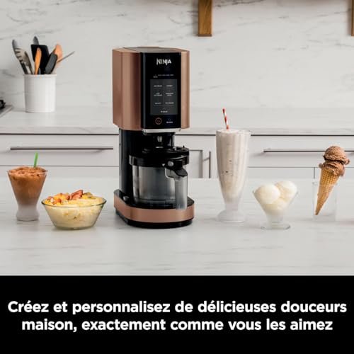 Exclusivité Amazon : Cette sorbetière Ninja CREAMi noire et cuivre est bien plus qu’une simple fabrique à glace. Créez et personnalisez de délicieuses gourmandises comme vous les aimez – des glaces gourmandes, des milk-shakes, des sorbets aux fruits sucrés, des smoothie bowls sans culpabilité et bien plus encore. Il suffit de remplir le pot d’ingrédients, de le placer au congélateur pendant 24 heures, puis de brasser en une crème parfaite en quelques minutes lorsque vous êtes prêt à servir ! La technologie Creamify transforme votre base congelée en un délice crémeux. Généreux, faible en sucre, sans produits laitiers ou végétalien – à vous de choisir ! Le programme Mix-Ins vous permet de personnaliser votre dessert en répartissant uniformément les pépites de chocolat, les bonbons, les noix et les biscuits dans la cuve avec précision et contrôle. Vous pouvez ainsi créer des glaces à la menthe et au chocolat ou des glaces avec des morceaux de guimauve moelleux et des biscuits croustillants. 7 programmes préréglés – Crème glacée, Glace à l’italienne, Sorbet, Smoothie Bowl, Crème glacée légère, Milkshake et Mélanges. Les pièces amovibles sont lavables au lave-vaisselle pour un nettoyage facile. Ninja – Faites de votre cuisine une cuisine Ninja.