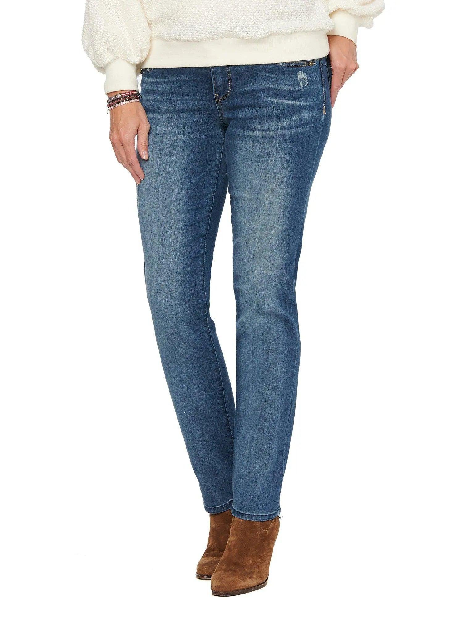 A staple you must always have in your wardrobe, the light wash “Ab”solution® Ankle Skimmer offers tummy control with slimming power-mesh panels, a no-gap waist, and the perfect “booty lift.” Made from incredibly soft and comfy stretch denim in an artisanal wash with delicate whiskering and fading detail. These jeans ship with a rolled cuff that “skims” the ankle; customize your look by wearing them cuffed or uncuffed at the hem. The blend of cotton, lyocell, polyester, and spandex creates a soft and luxurious denim.